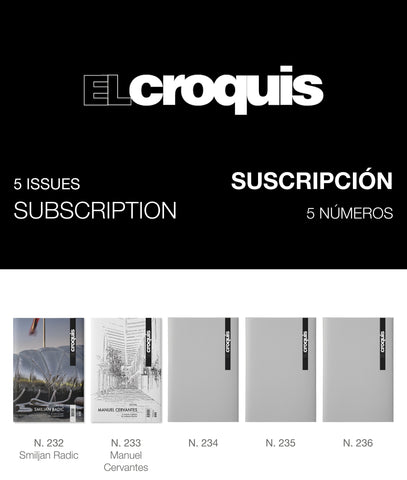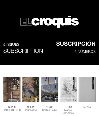 La Suscripción Impresa a El Croquis incluye 5 números consecutivos. Los gastos de envío están incluidos en el precio mostrado. IVA no incluido.